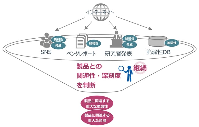 - 公知脆弱性情報データベースに加え、SNSやセキュリティ専門家が発信する幅広い情報を活用した情報収集