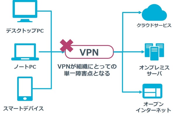 2点目はリモートアクセス後の社内ネットワークがフラットに扱われる点である。本来権限を持つべきでないユーザが社内の重要な情報資産にアクセス出来てしまい、内部不正を起因とした外部への情報漏洩が発生してしまう恐れがある。