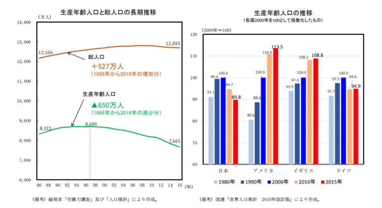 日本は、15歳から65歳までの労働力の中心となる「生産年齢人口」も、年々低下しており、先進国の中でもかなり深刻な状況であると言われています。