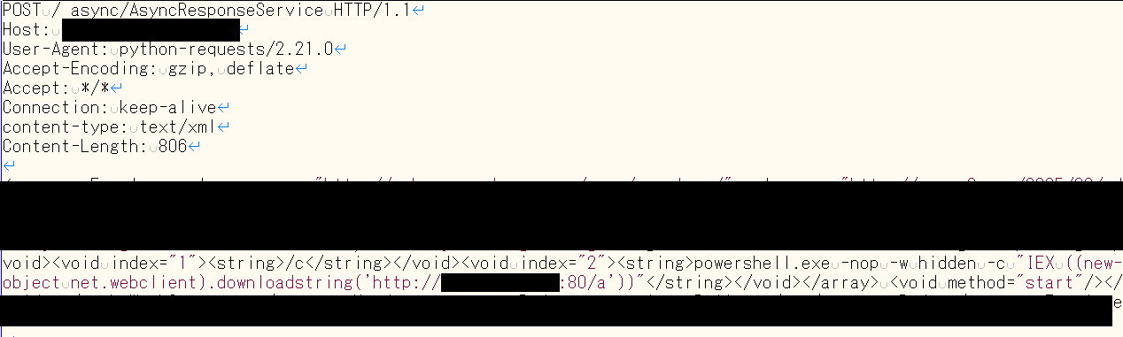 これらのリクエストには/_async/AsyncResponseServiceへのGETリクエストで該当コンポーネントの存在有無を調査するものや、POSTリクエストで対象ホストの脆弱性有無を調査するもの(図9)、ランサムウェアやCobaltStrike Beaconに感染させるものが含まれました。