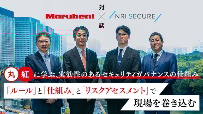 あわせて、ペネトレーションテストの実施も予定しています。インシデントを100%防ぐことは不可能であるという前提に立ち、特定の会社で被害が発生したという想定の訓練シナリオを作成し、法務や広報などの関係部門なども巻き込んだ全社的な演習を行う計画です。これまで、NRIセキュアの皆様には、セキュリティアセスメントにとどまらず、各種施策の推進支援やセキュリティポリシー策定の支援、丸紅グループ向け研修での講演、国内外の脅威動向に関する情報提供や調査など、さまざまな場面で支えていただきました。今後もご支援をいただきながら、より実践的で実効性の高いセキュリティ対策に取り組んでいきたいと考えています。