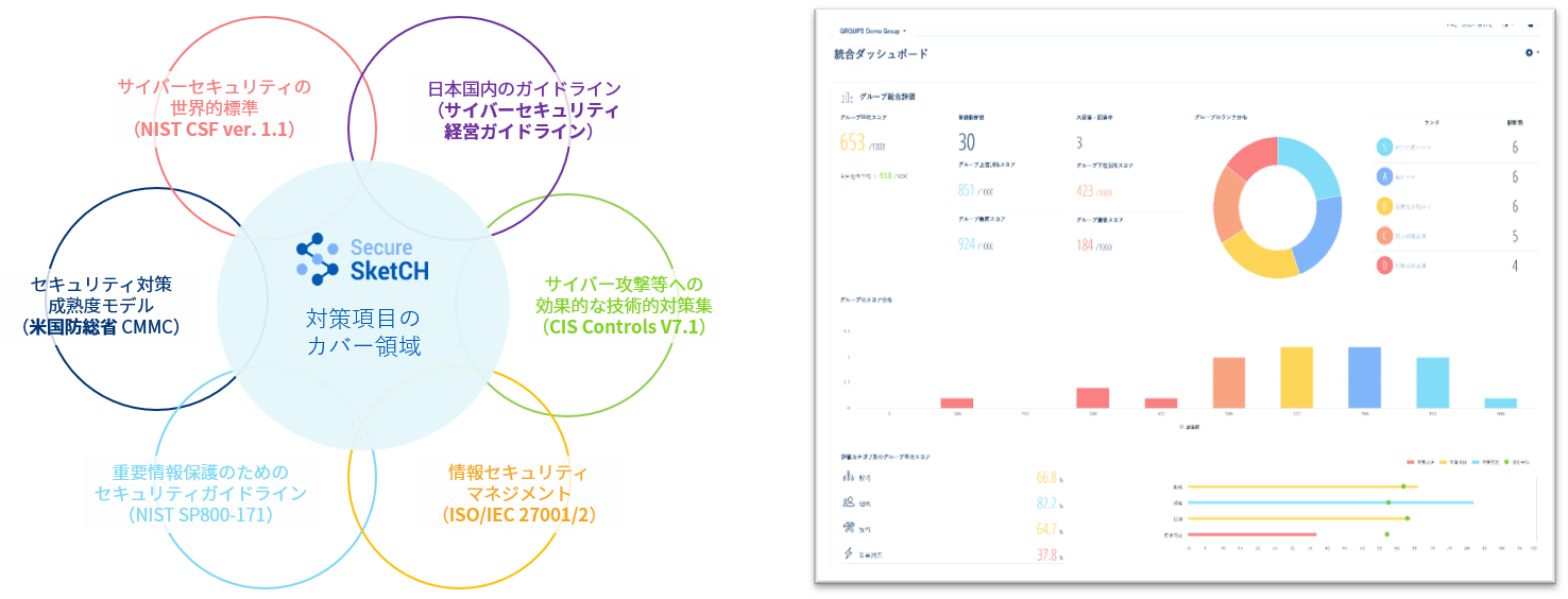 図1. ISO/IEC 27001やNISTフレームワーク含むSecure SketCH対策項目のカバー領域